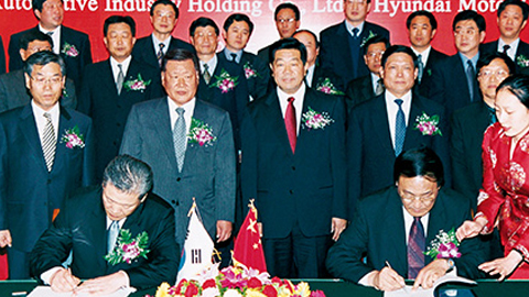 2002年4月29日,北汽集團與韓國現代汽車公司在北京簽署了全面戰略合作協議,北京現代汽車股份有限公司成為中國加入世貿組織后第一家完整的汽車制造合資企業。