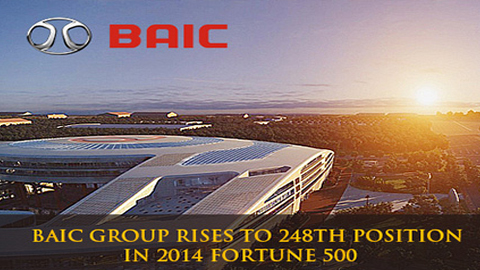2014年7月10日,北汽集團(BAIC Group)在2014年財富全球500強(Fortune Global 500)上升至第248位。與前年相比,提高了88位。北汽集團總收入為43,3239萬美元。