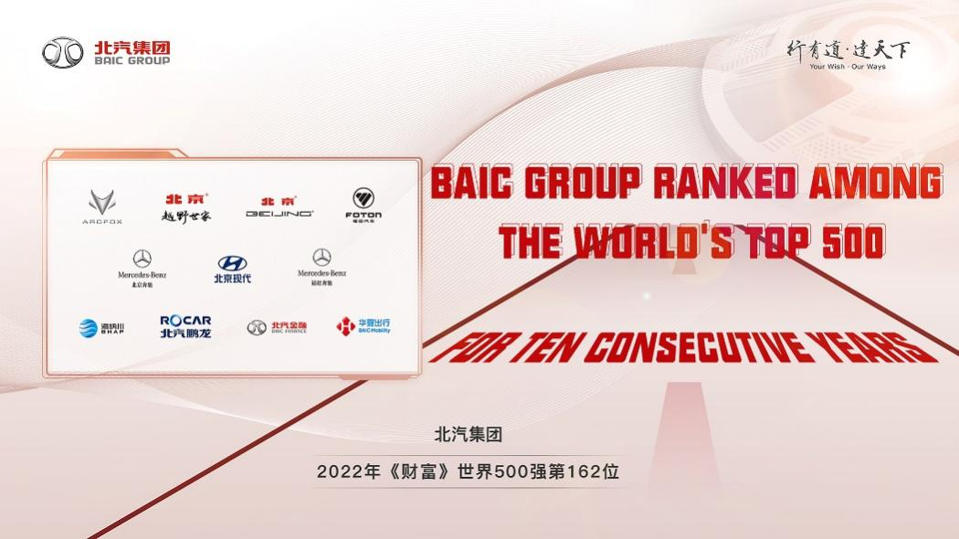 8月3日,2022《財富》世界500強排行榜正式發布,北汽集團以4817.6億元營收再度上榜,位居162位,連續十年入選世界500強排行榜。