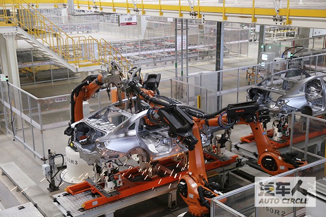 焊裝車間,175臺(tái)德國(guó)KUKA機(jī)器人集體操作,在線激光測(cè)量設(shè)備ACS、機(jī)器人抓件視覺引導(dǎo)系統(tǒng)更提升了焊接的精準(zhǔn)度。涂裝車間和總裝車間均采用越級(jí)的標(biāo)準(zhǔn),不論是供應(yīng)商還是設(shè)備,抑或是技術(shù)標(biāo)準(zhǔn)幾乎與北京奔馳一致。