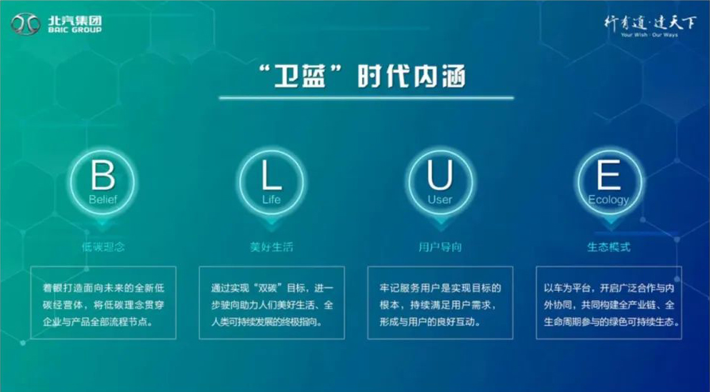 同時,作為國內人局新能源汽車產業的先行者、“雙碳”戰略的踐行者,北汽集團發布了“BLUE衛藍計劃”,宣布深入推進全面新能源化與智能網聯化,打造乘用車、商用車全系列綠色低碳產品。通過產品降碳、技術降碳、制造降碳、低碳生態四大行動,全力在2025年實現碳達峰,2050年實現產品全面脫碳、運營碳中和。