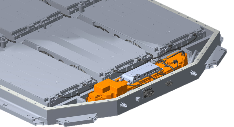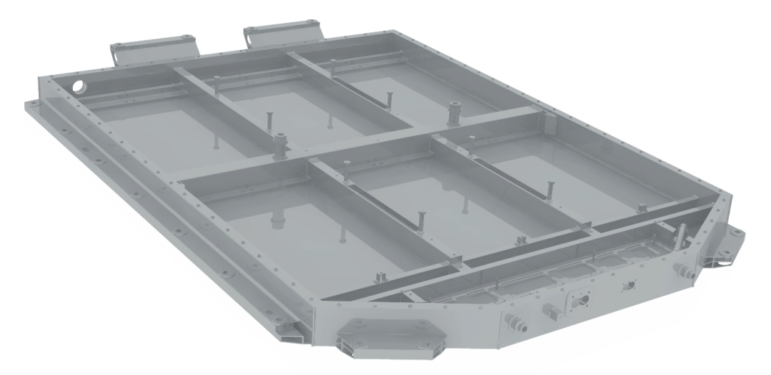 為確保托底安全,電池底部采用高強鋼板進行底部防護,能夠通過嚴苛底部球擊測試。底部板噴涂有PVC涂層,有效防止石擊磕碰損傷。同時,電池底護板由螺栓固定于箱體框架上,遇磕碰損壞后,可單獨對底護板進行拆卸更換,節(jié)約維修成本。極狐電池采用“干濕分離”的熱管理設計,電池箱體底板集成液冷板,即在箱體底板內(nèi)形成冷卻液管道,冷卻液即使在極端情況下發(fā)生泄漏,也不會泄漏到模組高壓區(qū)域,確保用電安全。