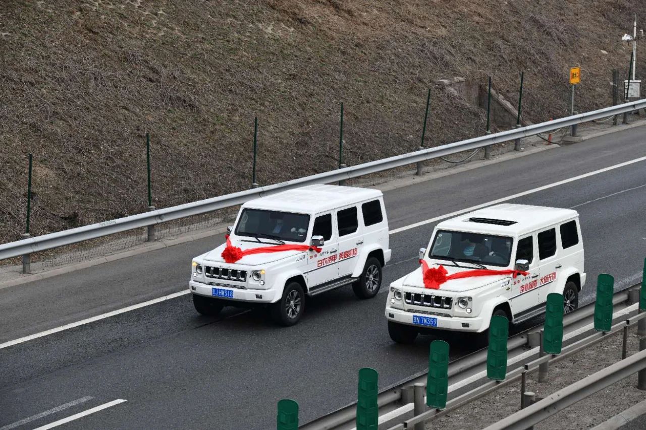 短暫的歡迎儀式后,醫療隊員們坐上北汽福田大巴。在警車護衛下,黑色BEIJING-EU7純電動汽車作為引導車,白色北京越野BJ80作為押尾車,車隊浩浩蕩蕩行駛在首都的公路上,把醫療隊隊員們送到指定地點休養。