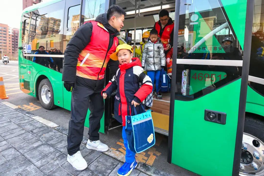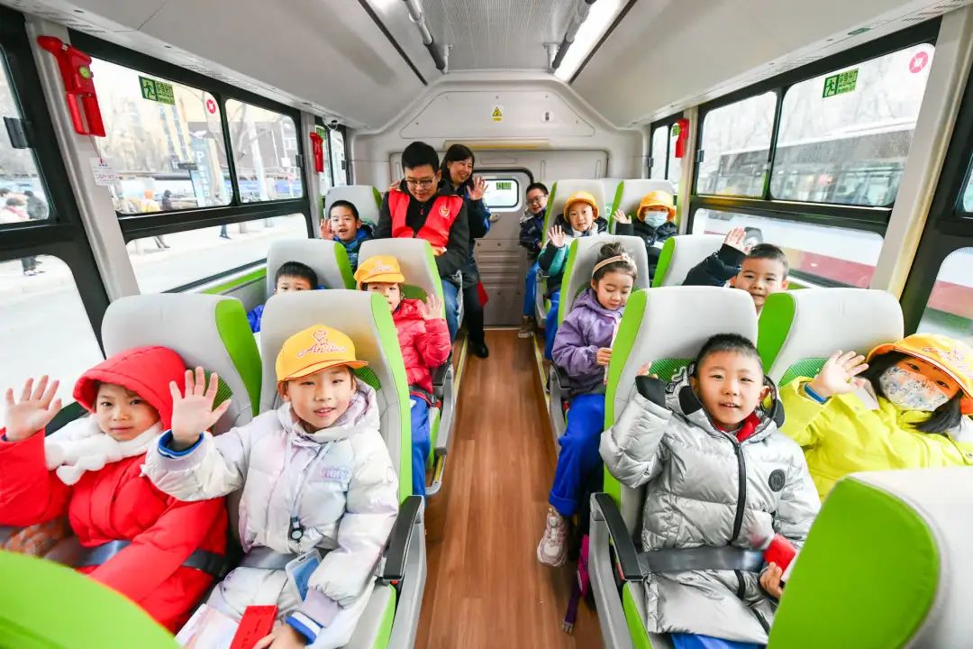 此次交付的第二代通學車覆蓋12米級、8米級及6米級三種尺寸,車輛頭部采用全新微笑燈帶設計,同時增強車輛外觀燈帶配光,大幅提升辨識度,能夠適應多種通學路況需求。其中,6米級“迷你”通學車型設計主要針對處在狹窄街巷中的學校,轉彎、掉頭更為便捷。