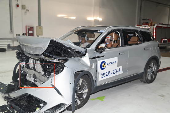 在更為嚴(yán)苛的40%重疊量正面偏置碰撞試驗中,BEIJING-X7的籠式結(jié)構(gòu)能有效地將碰撞能量進(jìn)行疏導(dǎo),確保了乘員艙完整,A柱紋絲不動。主副駕安全氣囊正常彈出前后排貫穿式側(cè)安全氣簾的及時彈出有效保護(hù)乘員。碰撞后ECALL系統(tǒng)通知遠(yuǎn)程救援中心以確保及時救援。
