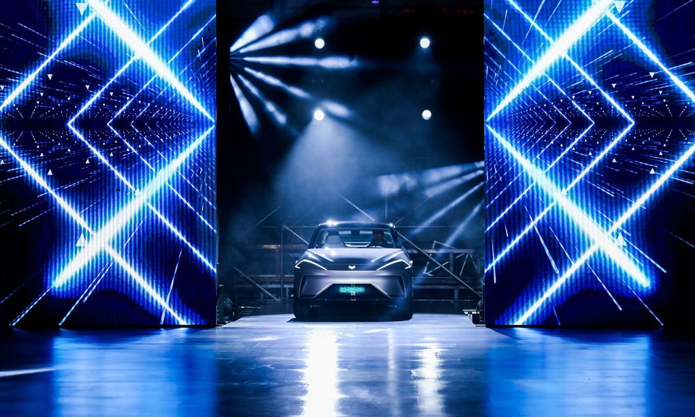 在震撼的音樂中,ARCFOXECF終于揭開神秘面紗,驚艷亮相,將發(fā)布會推向高潮。