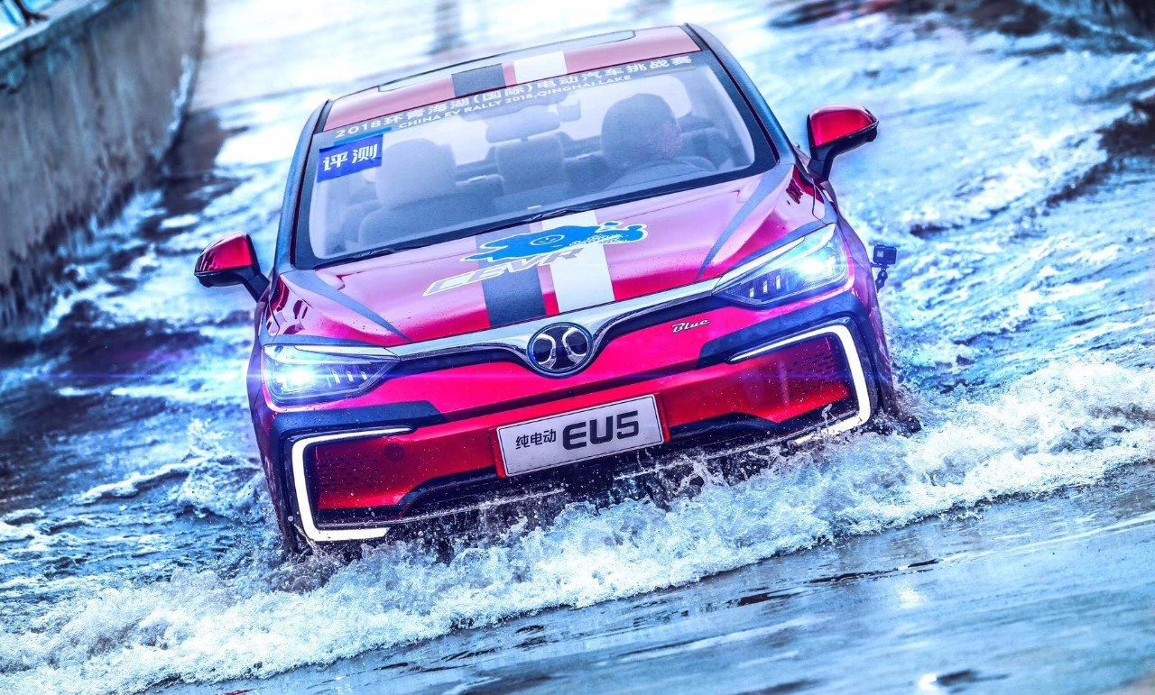 (北汽新能源參賽車輛進(jìn)行涉水評測)