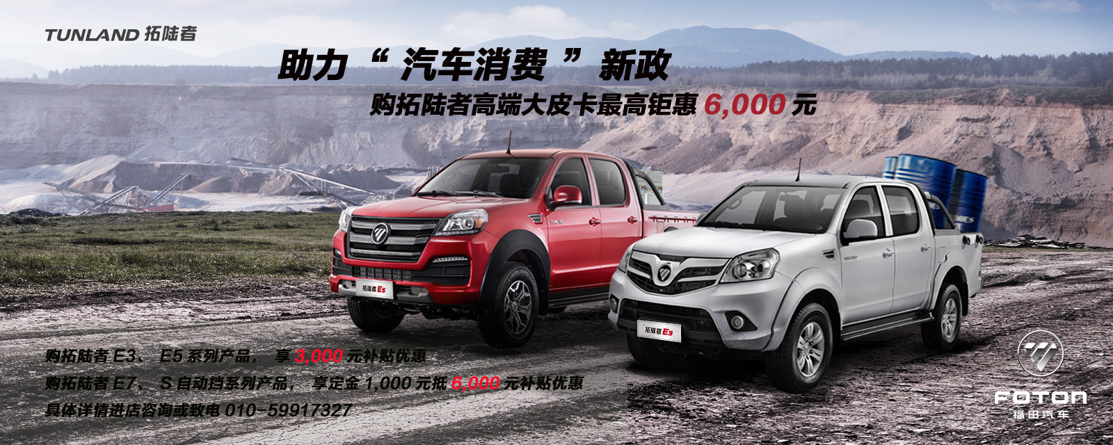 皮卡車型成為政策惠及的新板塊。作為北汽福田旗下皮卡車型品牌的福田拓陸者系列,是此次《方案》公布后最早依據(jù)方案提出實質(zhì)性惠民政策的汽車品牌之一。春節(jié)期間,福田拓陸者針對農(nóng)村用戶推出了響應(yīng)新政的優(yōu)惠政策:持有農(nóng)業(yè)戶口購買E3、E5產(chǎn)品的用戶,在享受國家提供10%的補貼基礎(chǔ)上,再直接享受3000元的廠家補貼優(yōu)惠,這意味著購買E5可最高直享2萬元的優(yōu)惠補貼。