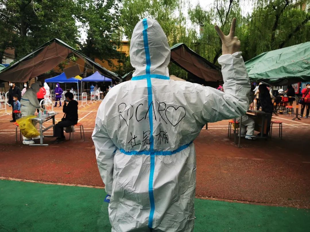 由于是第一次穿防護服,杜冠楠沒有經驗,鞋子太大不能套進去。長長的隊伍正在等待核酸,他果斷脫掉鞋子,直接穿上防護服,赤腳上陣!當天正是小雨淅瀝的天氣,氣溫驟降,當杜冠楠脫掉防護服時,腳底已是冰涼。“我是北汽人,關鍵時刻必須站出來。”